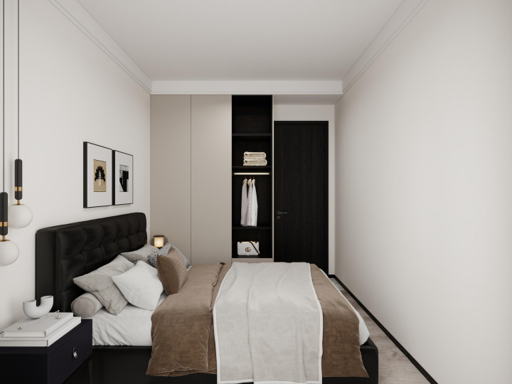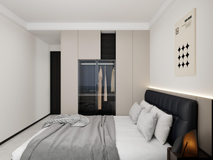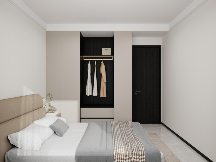 色调搭配以低饱和中性色为基底,主色选择奶白、浅灰、米杏,奠定和蔼通透的空间基调;辅色搭配深胡桃木、深咖,增添温润档次;局部以哑光金、枪灰金属作念细节点缀,擢升精采感,合座色调不超3种,保抓视觉妥洽干净。