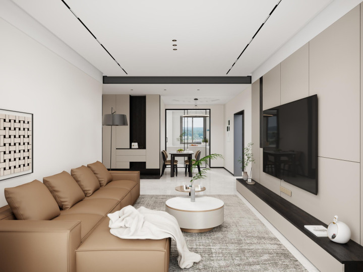 空间袭取怒放式布局,客餐厨一体化拉伸视线。顶面作念无主灯筹谋,以磁吸轨谈灯、线性灯、筒灯营造和蔼光影;大地通铺柔光瓷砖或哑光大理石,墙面用微水泥、艺术漆,开云体育(kaiyun)官方网站简化踢脚线与造型,强化横平竖直的极简线条。产物选低矮检朴款,以头层牛皮、磨砂布艺、实木为主,柜体作念一门到顶无拉手筹谋,终了视觉整洁。