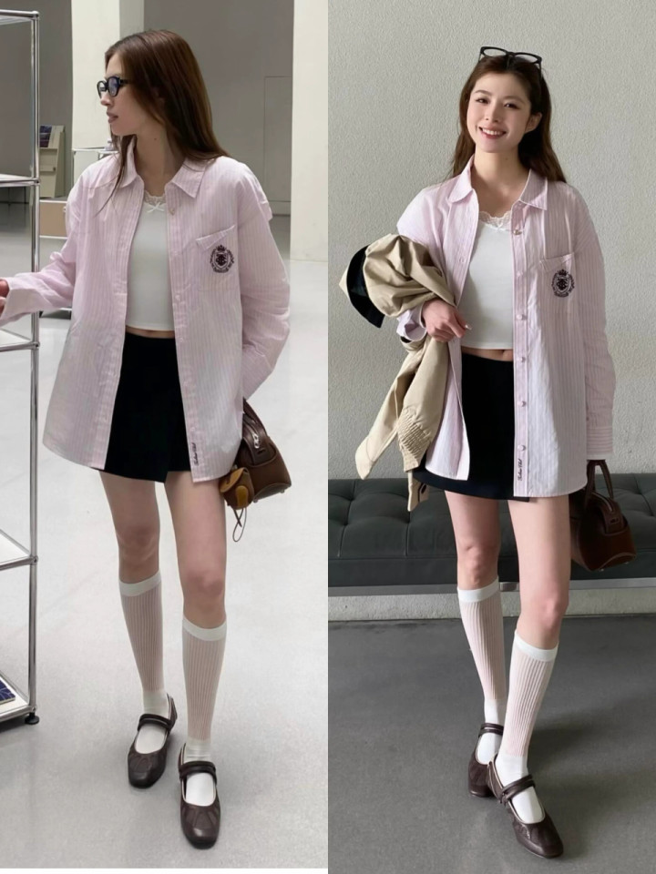 遍地开花的季节照实是展现好肉体最好的时机,可以用露腰穿法,举例用白衬衫配白色短款打底衫和一条玄色的短裙,脚上穿的棕色玛丽珍鞋和白色中筒袜,猖獗勾画出你的好体态。