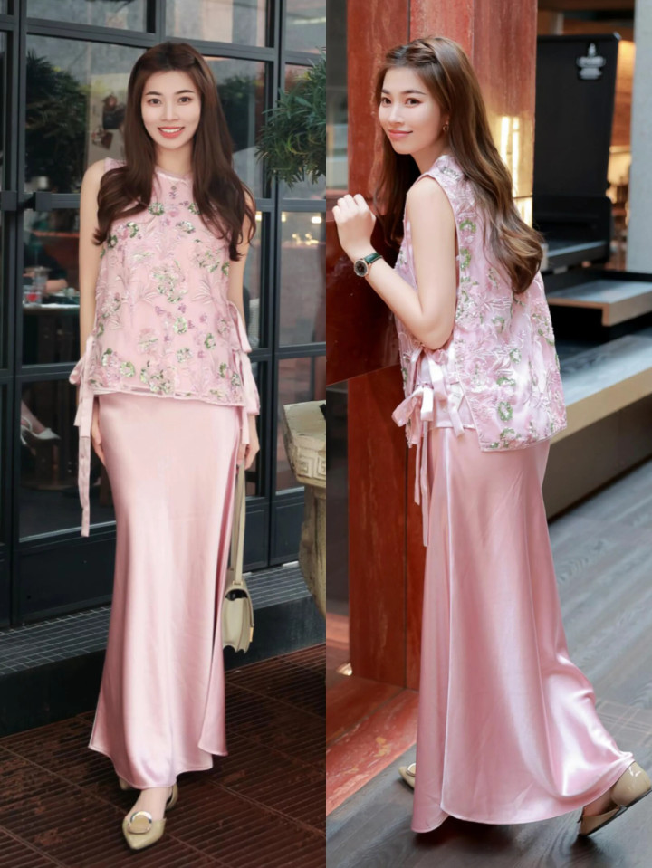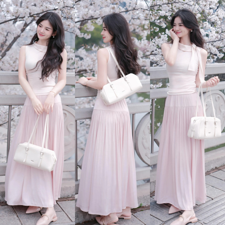 但不异是粉色的裙装造型,微弱的各异也会发生改造,举例上头这种新登科的印花无袖上衣,配上缎绸面料的粉色半裙,上死后果,元气与贵气兼备。