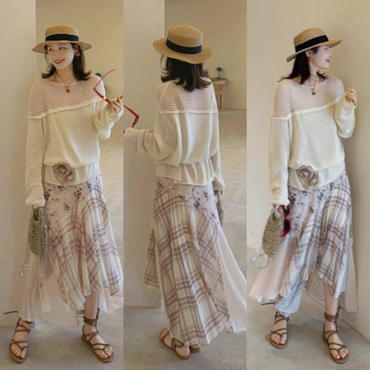 一条裙子配不同的上衣,展现独属于你的好意思。