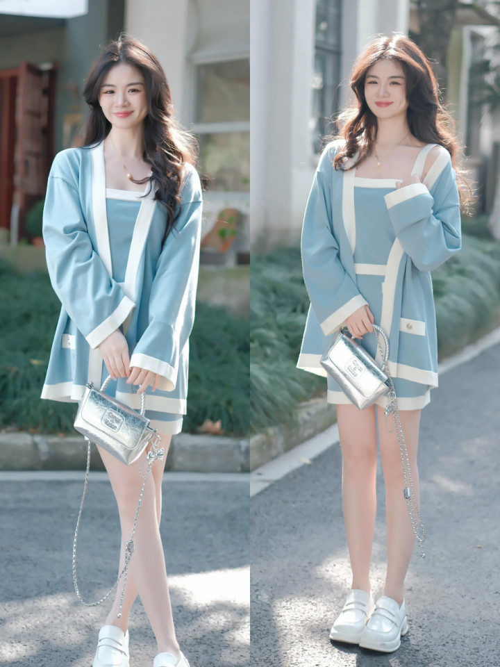 可以凭据我方的体态来选用允洽我方的穿衣气魄,要是长相甜好意思,个子工整,腿型凯旋,就可以用上头这一套雾霾蓝的真挚裙安设上小白鞋短裙穿搭,刚巧酿成了“下衣失散”穿法,更好地呈现我们的好意思腿,拉风又吸睛。