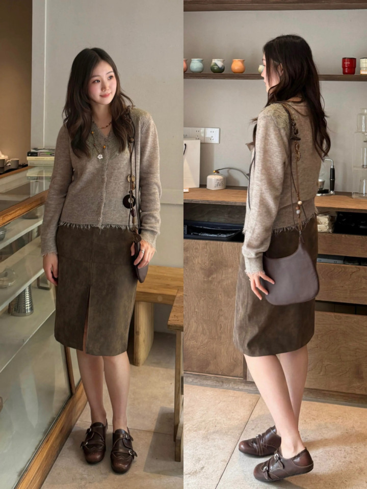 要是微胖女性念念让我方的肉体变得更畅达,照实可以选用一件软糯亲肤的真挚开衫,配上一条直筒开叉半裙,脚踩一对皮鞋,这么的打扮显得很缜密缓和,又能让肉体线条变得比拟畅达。