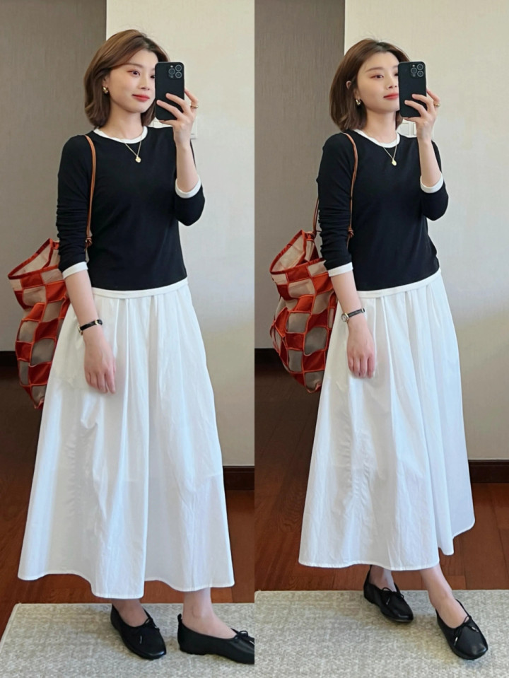 我们穿衣配色不是那么的熟练,不妨凯旋选用玄色真挚衫叠穿白色打底衫,下半身用高腰收腰款的白色伞裙,这么的短长色调穿搭,经典耐看,永不外时,也不会容易出错。