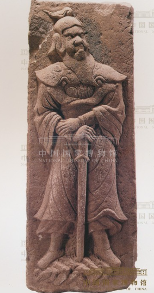 宋代浮雕拄剑武官石刻。起原/中国国度博物馆