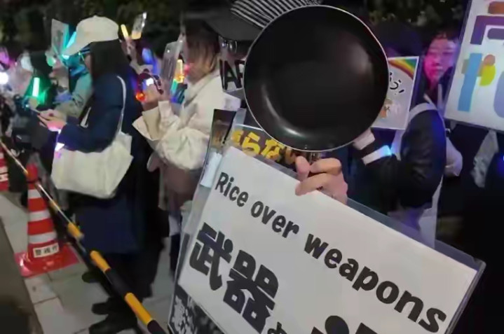 24日傍晚,日本国会隔邻再次鸠集起多数抗议大家。他们举着标语,喊出标语,反对政府修改“防患装备转念三原则”、鼓吹修宪等一系列举动。这还是是本月东京街头第三次大限度鸠集,每次参与东谈主数皆跳动万东谈主。