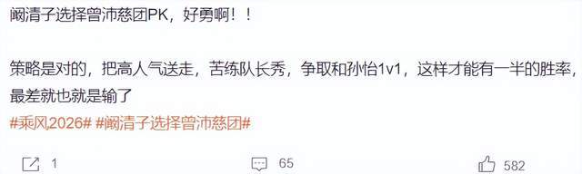 本期节目播出之后,热度都围绕孙怡和阚清子,而阚清子的计谋,也取得网友们的认同,她大要率是拿到了爽文女主脚本了,这一仗打得太漂亮了。