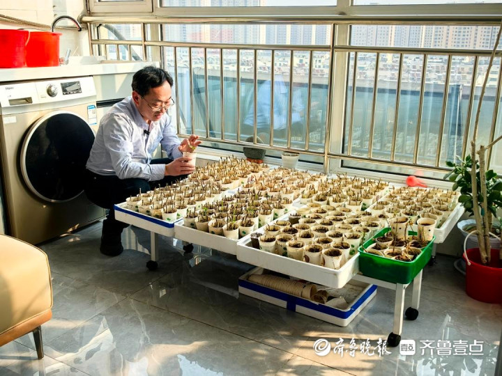 树顶的优质花芽需东谈主工采摘,王雷莫得云梯吊车,就用长绳绑铁锤头拽下枝条;极新花枝水培的三四个月里,他的家成了“育种履行室”,阳台客厅摆满花枝,一天一换水让水费翻倍,授粉智力更是分绝不敢差,十年间作念了上百个杂交组合,在无数次试错中摸索前行。
